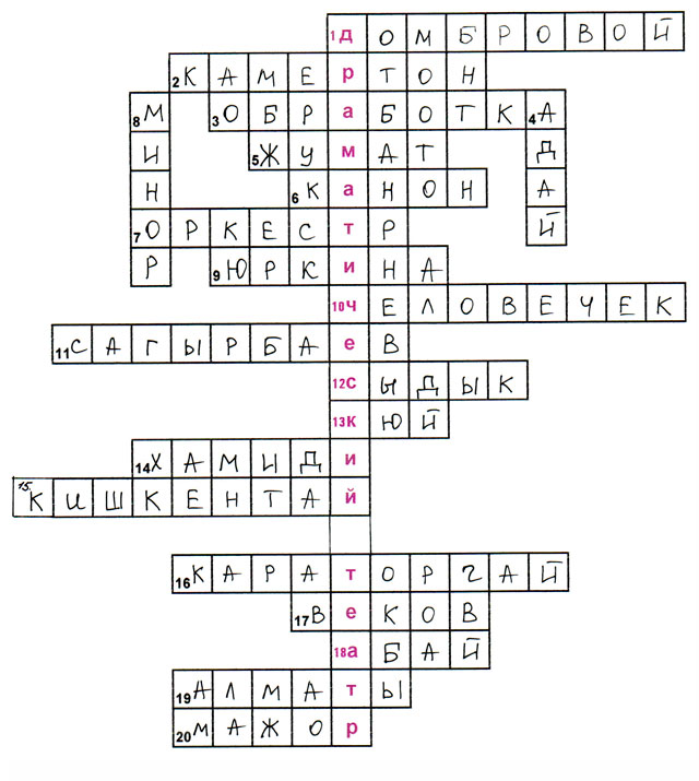 Кросворд призначений для учнів 6 класу, для закріплення вивченого матеріалу з теми «Казахська професійна музика».