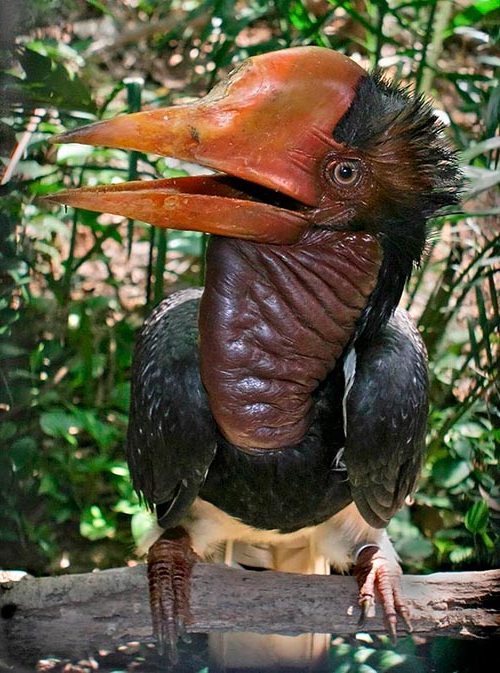 Шлемоклювый калао - найбільша з птахів-носорогів, мешкає в Азії. Свою назву вона отримала завдяки величезному «шолома», який починається біля основи лоба і різко закінчується прямо посередині дзьоба. Однак не тільки зовнішністю дивний шлемоклювый калао. Голос, який дуже схожий на маніакальний сміх, є візитною карткою птиці.