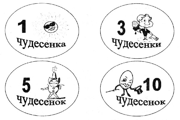1. Монетний двір випускає грошові знаки, які мають ходіння тільки на території літнього оздоровчого табору. Випускаються знаки номіналом одна чудесенка, три чудесенки, п'ять чудесеиок і десять чудесенок.