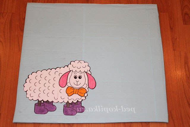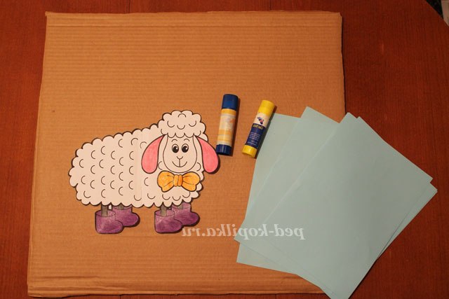 1. Для початку вибираємо розмальовку, яка нас зацікавила. Це може бути який - небудь персонаж. У нашому випадку ми вибрали ОВЕЧКУ. Вирізаємо її по контуру, а деякі деталі нашої картинки розфарбовуємо. Відкладаємо роботу в сторону.