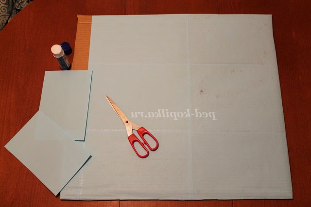 2. Наступний етап роботи - це ФОН. Зазвичай, для свого зразка я вибираю щільну основу великого формату. Цю основу за допомогою кольорового паперу - обклеюю. Колір фону вибирають за бажанням. Все залежить від того, що ви хочете зобразити на своїй картині. Хлопці можуть використовувати звичайний кольоровий картон, який обклеювати не потрібно. На цьому тлі маю свого персонажа і приклеюю його.