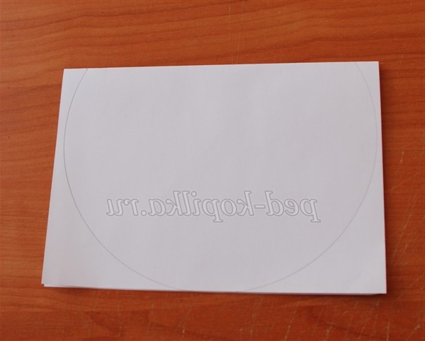 - беремо аркуш паперу А4, складаємо навпіл і малюємо будь-яку фігуру від руки (я намалювала неповний коло)
