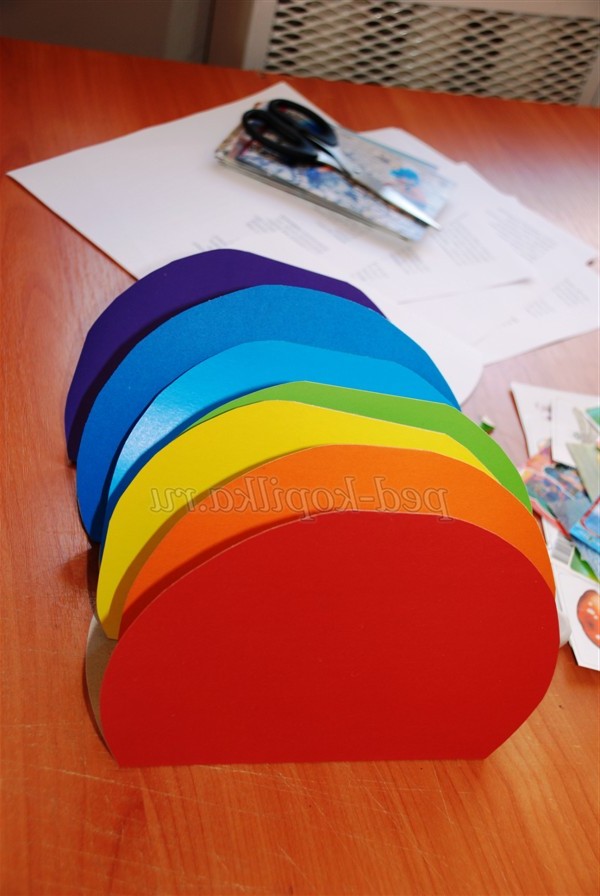 - вкладаємо картон один в одного (я за кольором веселки робила)