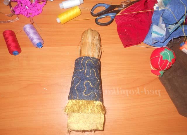 9. З допомогою тасьми і бісеру прикрашаємо ляльку, надаючи її поважність, шарм і красу.