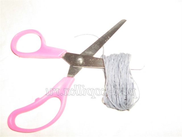 10. Для бороди взяти сірі нитки, намотати на 2 пальці пучок, розрізати нитки з двох сторін, перев'язати їх посередині.