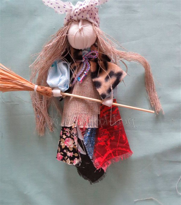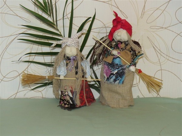 Робимо мітлу: примотуємо до палички мочало або суху траву.
