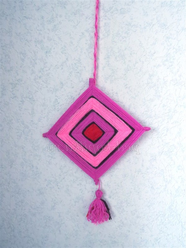 Міняємо кольору за бажанням, поки не обплетено палички до кінця. На паличках можна перед роботою зробити позначки олівцем, щоб смужки одного кольору ниток були однаковими.