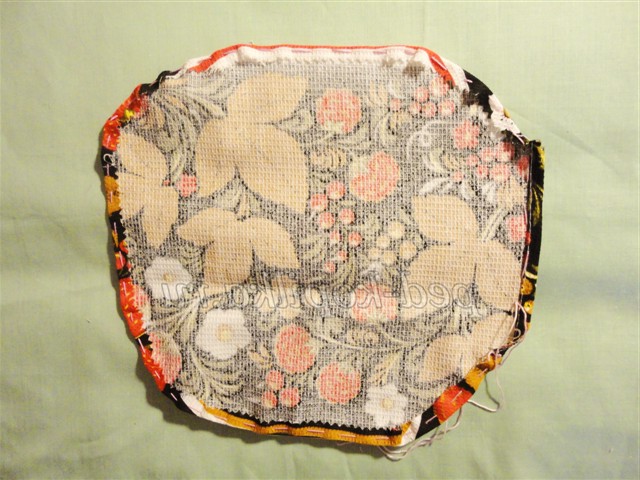 Крок 14. Беремо голку з міцною ниткою і прошиваємо по колу, загортаючи краї тканини на 0,5 см.