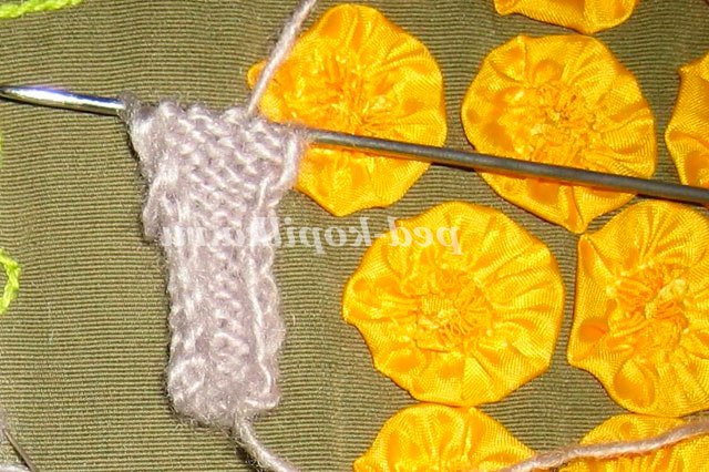 2. Скоротити кількість петель на спиці вдвічі (пров'язати ряд - дві петлі разом лицьовою), на спицях залишається 8 петель;