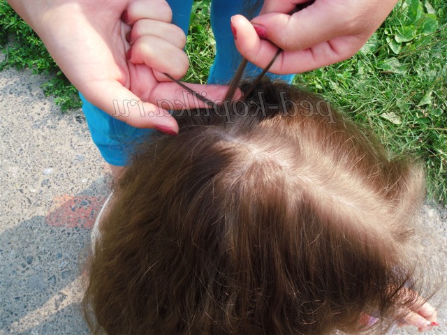 Щоб не залишався видно проділ, кіски плетемо щільно один до одного.