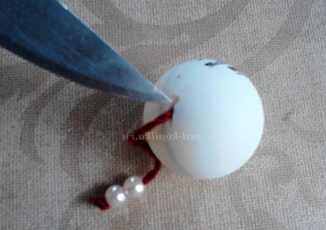 У м'ячі робимо ножем 2 отвори для ручок, 2 для ніжок і один отвір угорі.