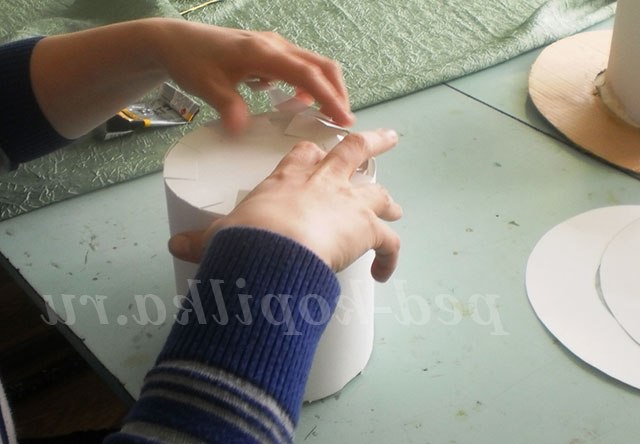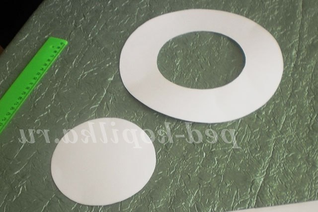4. Потім смужку і маленький коло склеюємо між собою, починаючи з будь-якої сторони, як вам буде зручно, а потім склеюємо два великих кола.