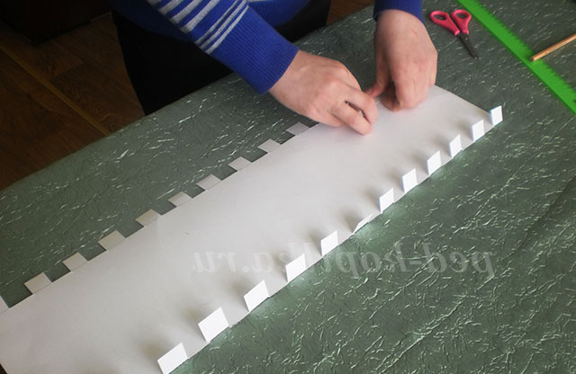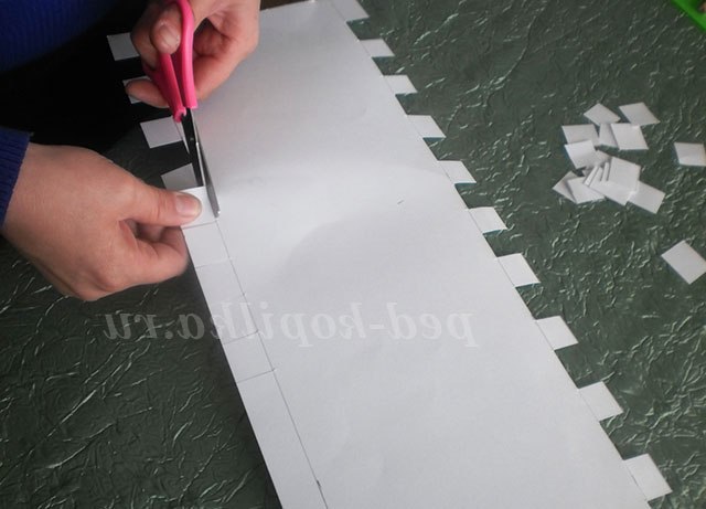 3. Далі на смужці нам необхідно вирізати зубчики, щоб зручніше було склеювати деталі між собою.