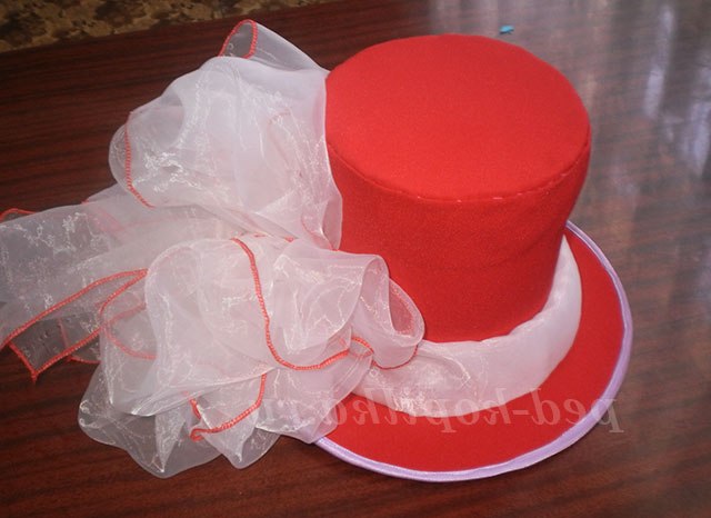 12. Ну і останнє, ми повинні цю капелюшок як то задекорувати тобто зробити більш красивою. Я пропоную пришити бант з органзи.