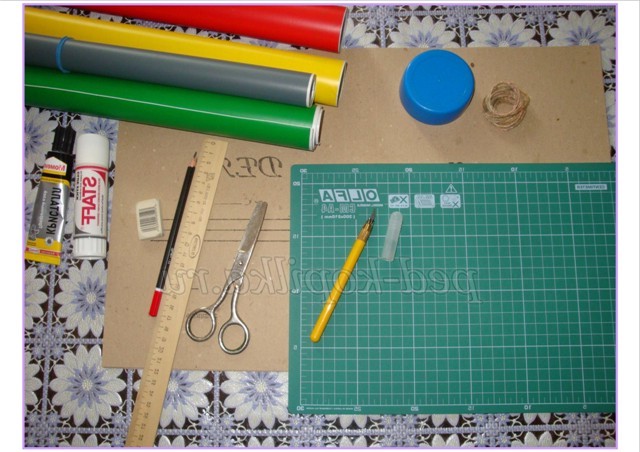 - самоклеящуюся плівку чотирьох кольорів: червону, жовту, зелену, сіру;