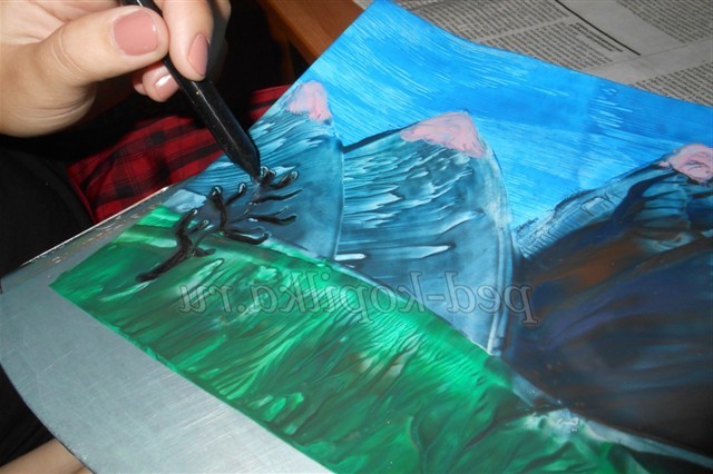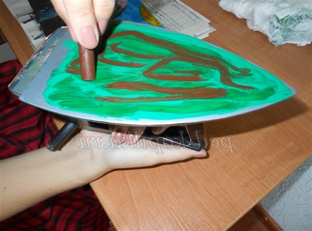 - малюємо на поверхні праски тонке деревце чорним дрібному: