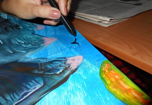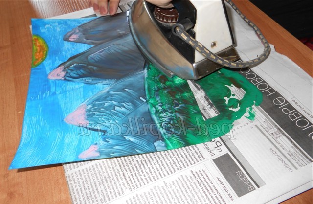 - таким же чином, на гарячому прасці, малюємо птахів, ширяють у небі: