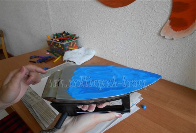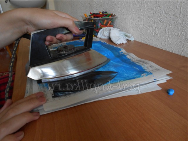 Отже, спочатку нагріваємо праска до такої температури, щоб олівець (крейда) плавився на підошві, але не тек.