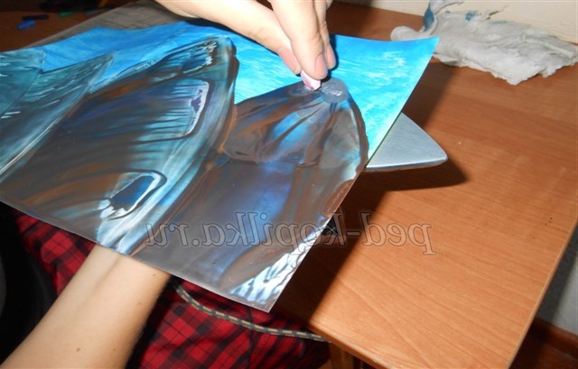 - лист кладемо на підошву праски, щоб він прогрівся і тепер прямо по поверхні малюємо верхівки гір: