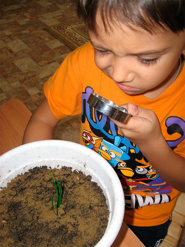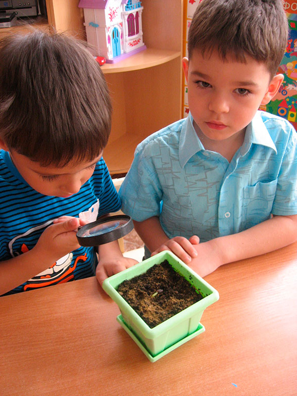 Коли ми за ними спостерігали, то побачили, що на одному горісі з'явилася тріщина, а з тріщини проріс маленький паросток і ми зрозуміли, що насіння пора висаджувати.