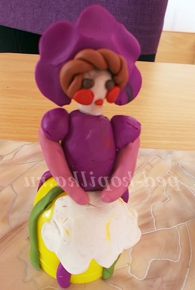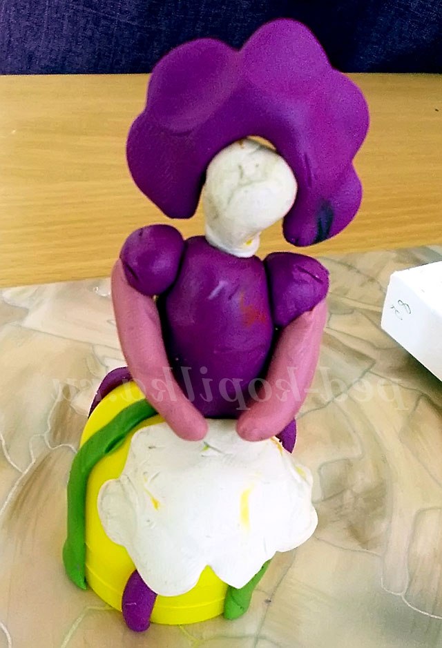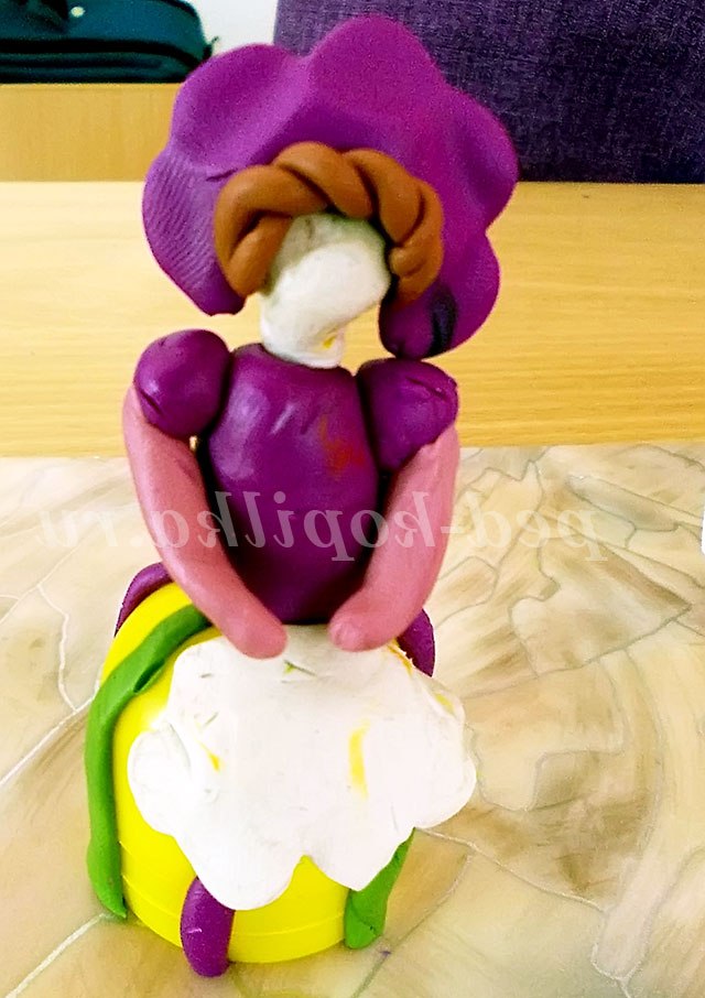2. Беремо 1/3 частину шматка пластиліну це тулуб нашої панночки, приліплюваний до спідниці.
