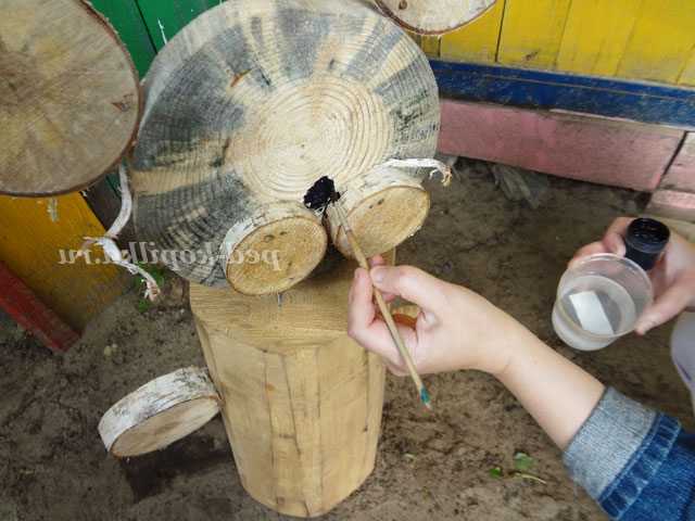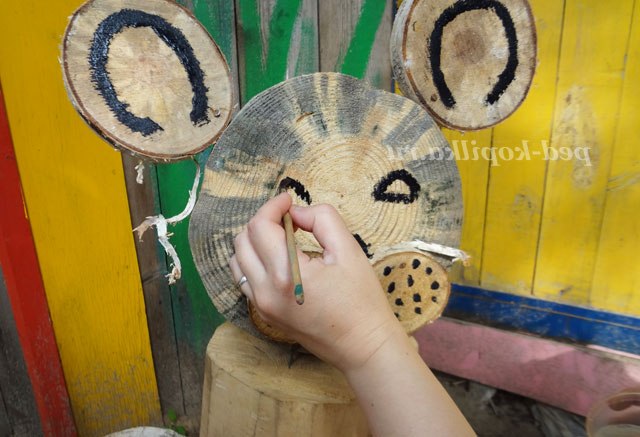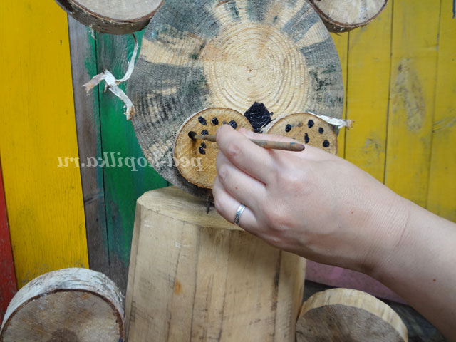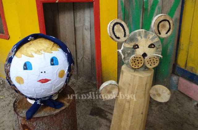 Колобка ставимо на пеньок поменше і з'єднуємо композицію.