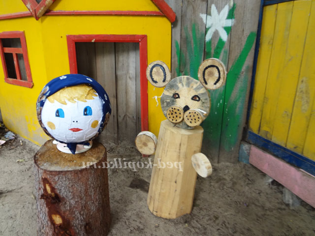 Цього літа я набирала дітей у 2-у молодшу групу і думала, як же мені прикрасити ділянку, щоб привернути їх увагу. І вирішила створити композицію за казкою «Колобок».