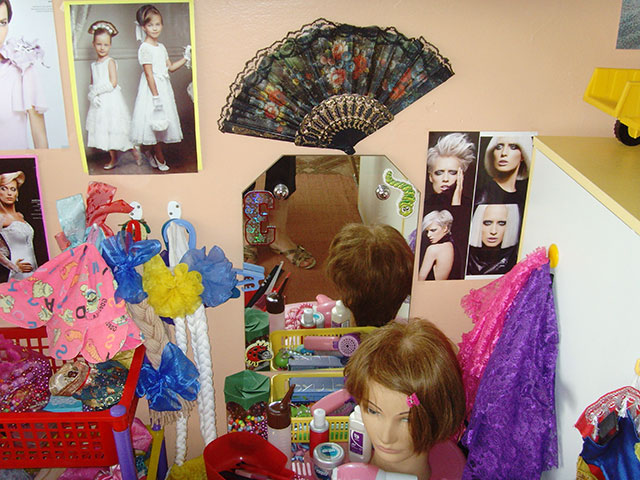 Оформлення ігрового куточка також зроблено з стельових плит і пофарбована водоемульсійною фарбою.