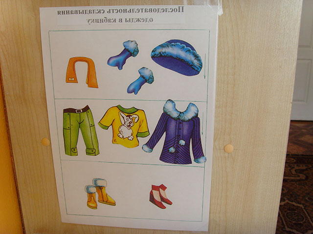 Алгоритм одягання (одяг вивішуємо сезонно) та складання одягу в шафку.