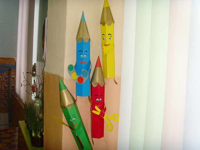 Це оформлення «Веселі олівчик» для куточка художньої творчості.