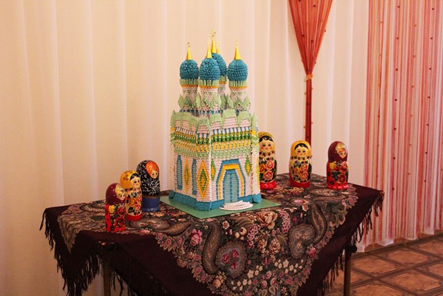 Менше місяця тому в нашому дитячому садку відбувся творчий звіт. Концерт який ми підготували, був у формі вручення музичної премії «Золотий грамофон». У нас це називалося «Золота матрьошка», тому зал виглядав ось так.