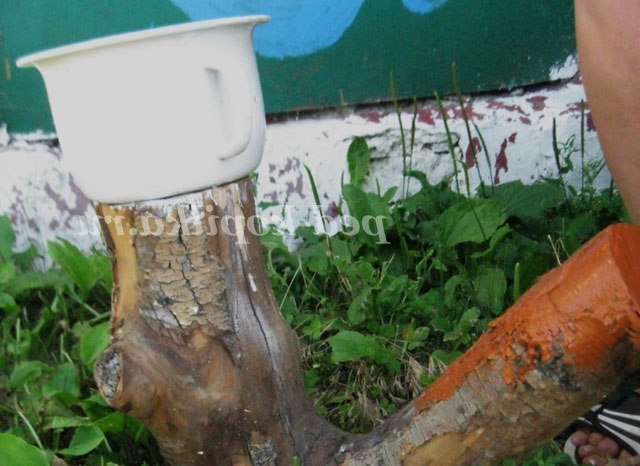 4) Додати зеленої фарби, щоб пень гармоніював з садової травою