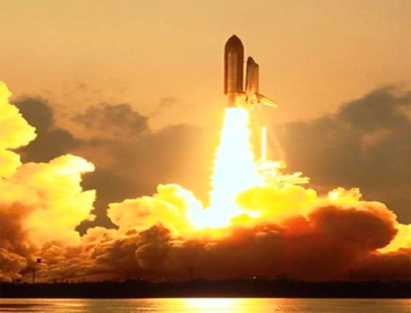 Коли космонавт сів у ракету, пішов зворотний відлік: «П'ять, чотири, три, два, один, ПУСК!». Ракета відірвалася від землі, з її хвоста вирвався вогонь - так сильно працював двигун. І ракета полетіла високо в небо.