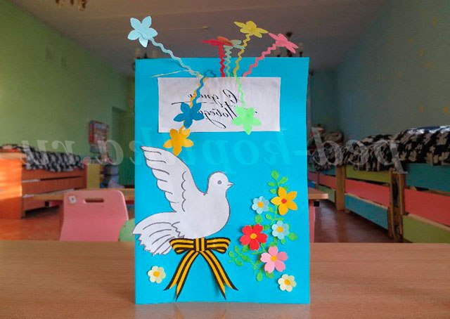 Наклеюємо напис «З Днем Перемоги!». Такий варіант листівки ми зробили з дітьми середньої групи.