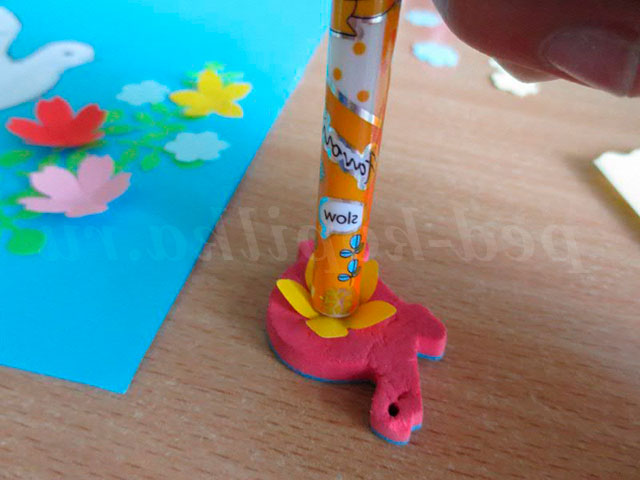 Для обсягу квітки в середині продавлюємо олівцем з заокругленим кінцем. Приклеюємо квітки, розташовуючи їх на гілки.