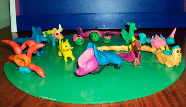 На одній планеті - вона називалася "Рис-З" - були дуже погані метеорологічні умови. Там кожен день з неба падали метеорити або камені. Тому всі тварини цієї планети мали панцир, зовсім як наші черепахи. Спробуйте разом з мамами за допомогою пластиліну та шкаралупи волоського горіха зробити фігурки цих тварин. А ось як вони називаються, ми дізнаємося вибравши картку з назвою тварини.