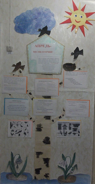 Ми підібрали твори про птахів різних письменників і поетів, заучували заклички, вірші, оформили у адміністратора, кіоск «Квітень-місяць пташиний», у центрі природи організували виставку птахів нашого краю, загадували загадки, розфарбовували розмальовки, малювали, розучували пісні і танці.