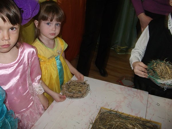 Була проведена колосальна робота з батьками, з соціумом селища. З допомогою батьків була оформлена виставка-розкладачка про птахів «дізналися ми про птахів?», підготовлені костюми учасникам, розучені слова пісень і віршів, отгадана вікторина « Що ви знаєте про птахів?», папи змайстрували шпаківні, які ми розвісили на деревах.