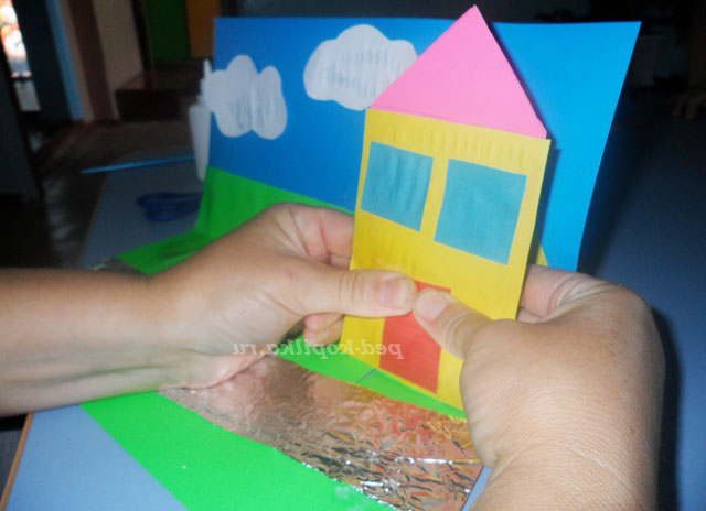 Зроби з картону і кольорового паперу будиночки у руки. Їх можна використовувати як декорацію для ігор.