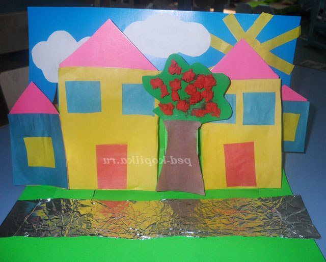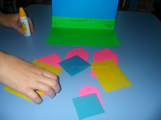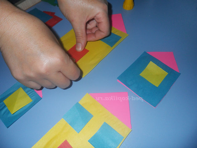 5) Наклади і приклей на будиночки квадрати інших кольорів.