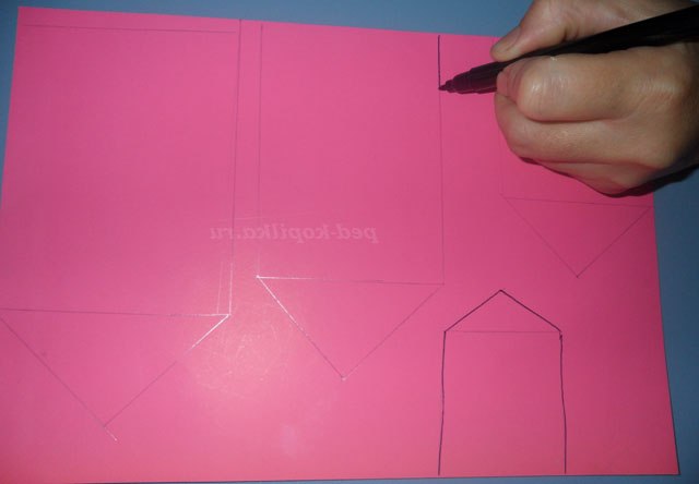 4) Намалюй чотири будиночки і виріж їх червоного картону.