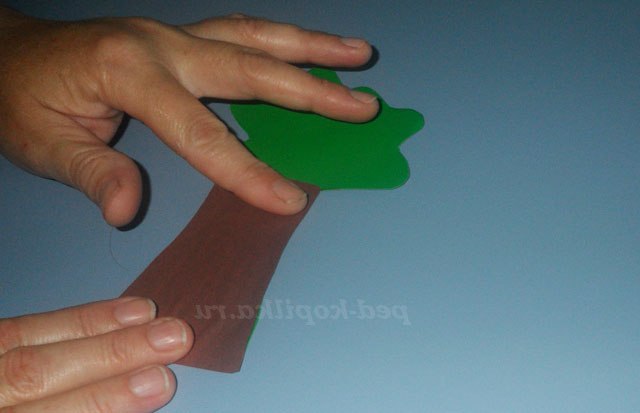 7) Намалюй контур дерева на зеленому картоні і приклей стовбур коричневого кольору.