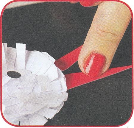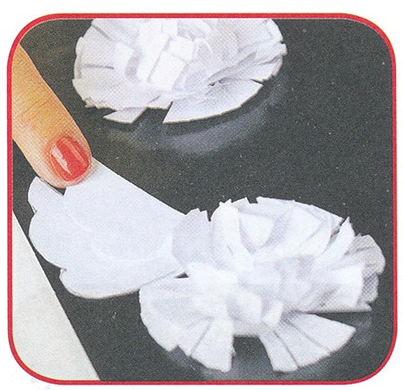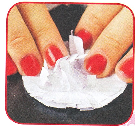 3. Приклейте кола на основу. Для цього з'єднайте по 5-6 кіл між собою, капнувши в їх середину клей. Почекайте, поки він висохне. Распушите кінці папери руками - вийде пухнастий клубочок.
