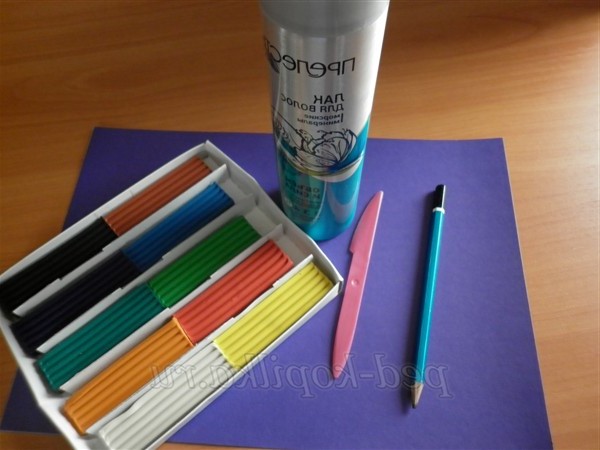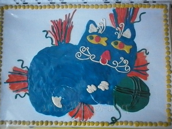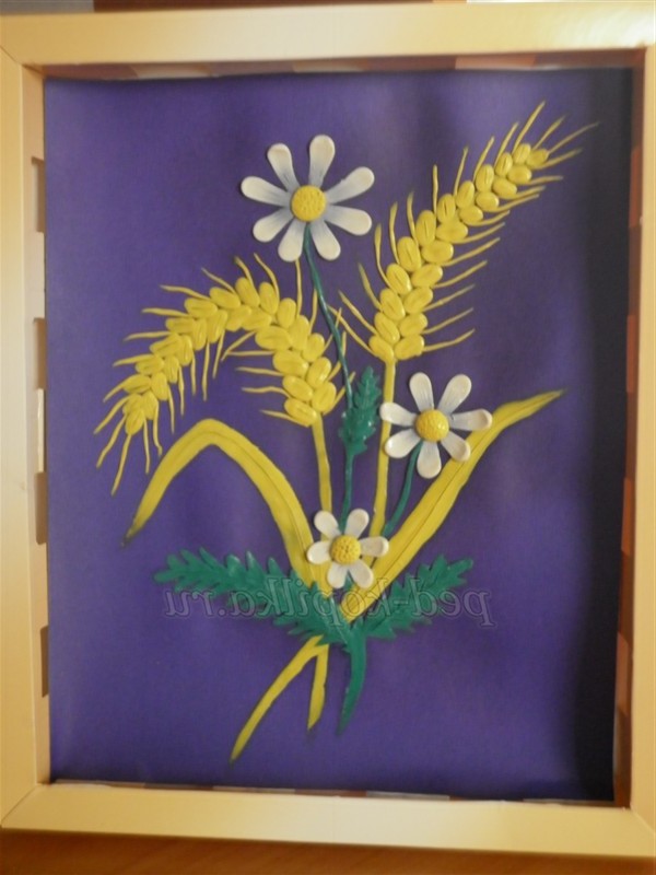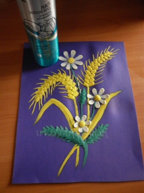 Готову роботу збризкуємо лаком для волосся, щоб вона не запорошилася, так як пластилін сильно притягує пил.