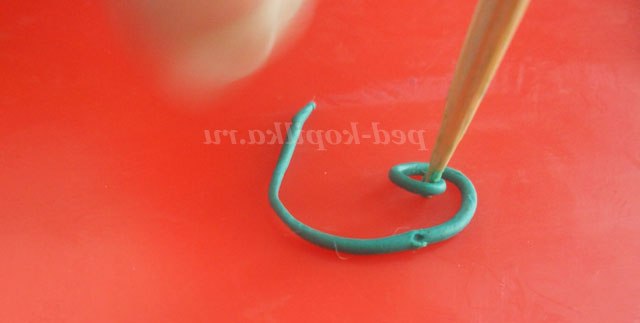 Кінцем зубочистки наколюємо край усика і закручуємо його у формі равлика.