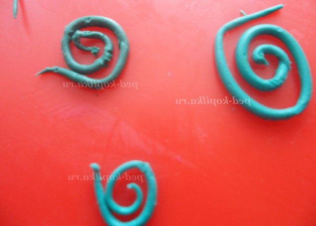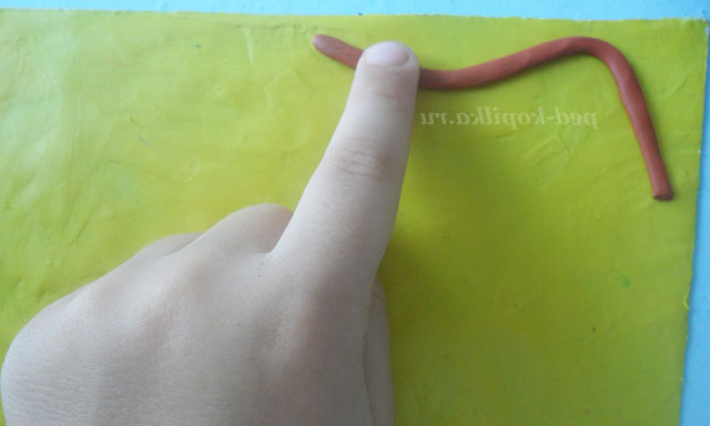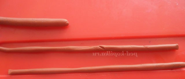 З пластиліну коричневого кольору розкачуємо «ковбаски» для лози.