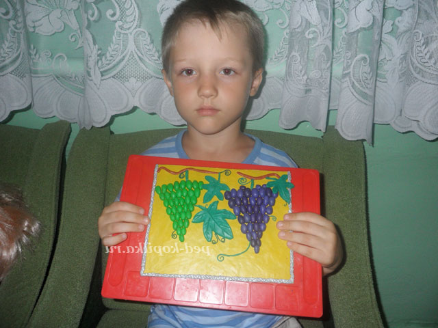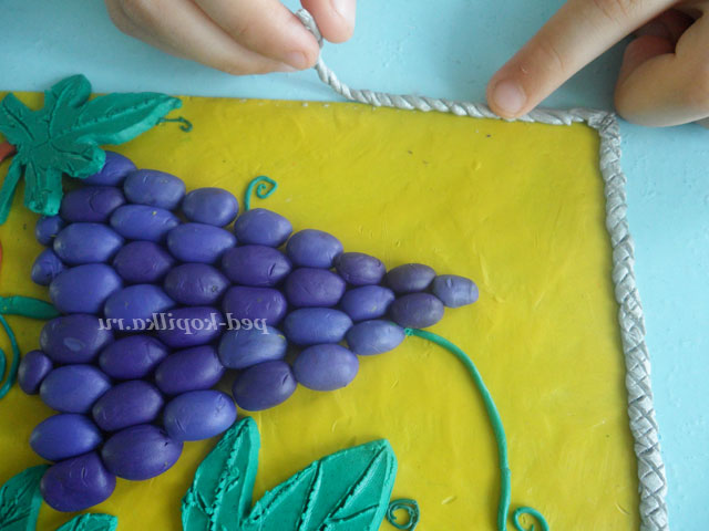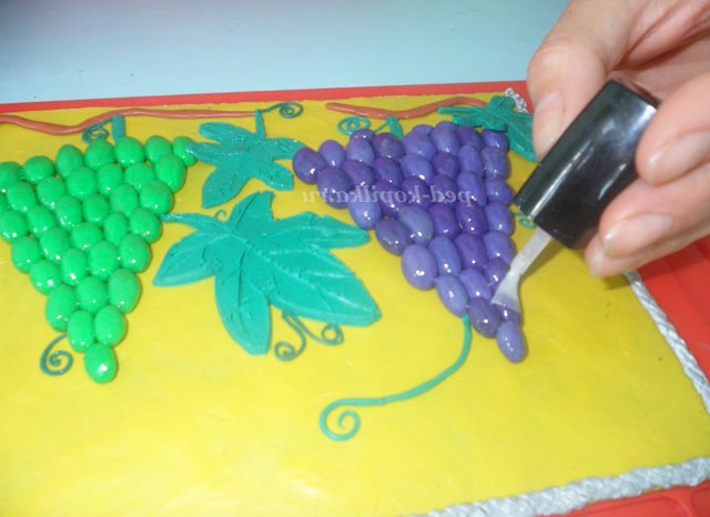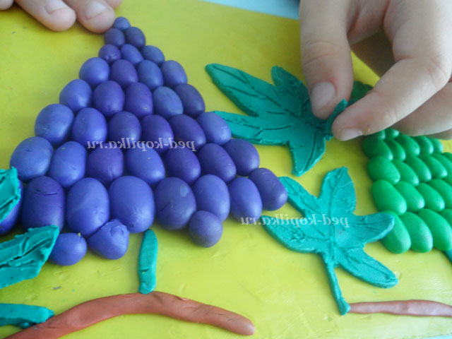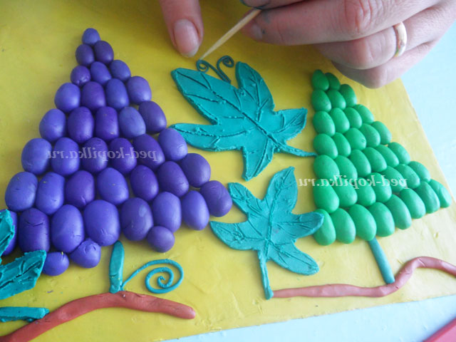 Після того, як грона винограду готові, маємо і ліпимо листя і вусики.