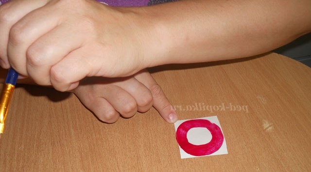 Тепер беремо фарбу червоного кольору і наносимо її на папір .