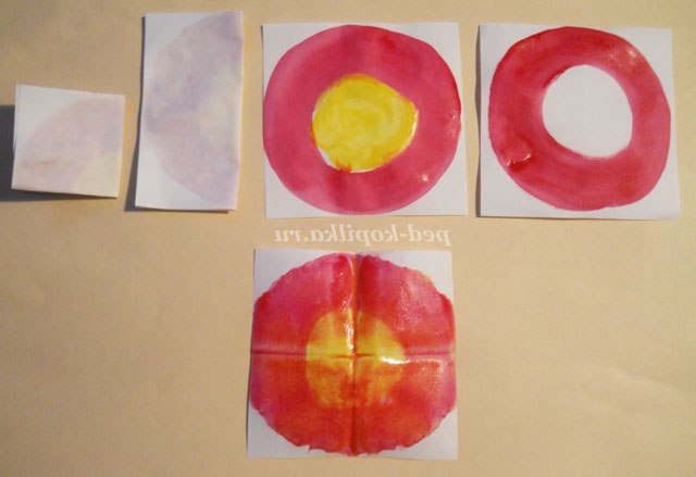 І відразу ж складемо папір навпіл, поки фарба не висохла, і ще раз навпіл і розгорнемо.