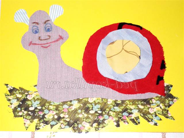 З дітьми 6-7 років можна зробити ось таку аплікацію з тканини.